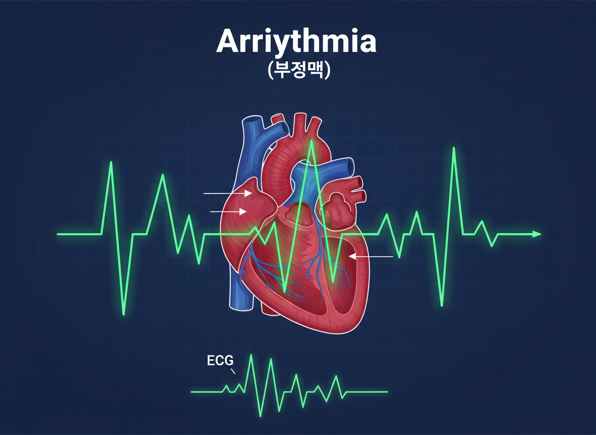 - 부정맥 (Arrhythmia): 심장의 전기 신호 전달에 문제가 생겨 맥박이 너무 빠르거나 느리거나 불규칙해지는 상태입니다.