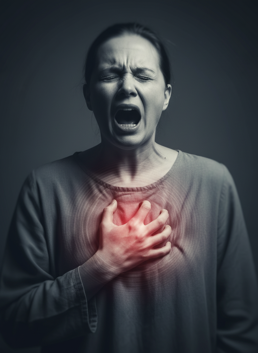 - 가슴 통증, 압박감 또는 답답함이 동반될 때
