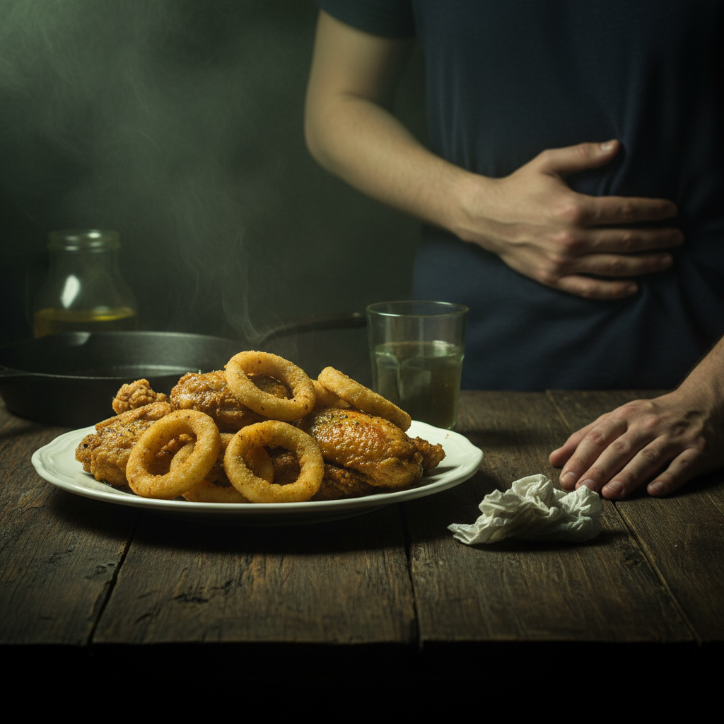 특별히 잘못 먹은 것도 없는데 속이 더부룩하고, 구역질이 나거나 식욕이 뚝 떨어집니다. 간은 담즙을 생성해 지방 소화를 돕는데, 이 기능이 떨어지면 기름진 음식을 소화하기 힘들어지고 메스꺼움을 느끼게 됩니다. 우측 상복부(갈비뼈 아래)에 묵직한 불쾌감이 느껴질 수도 있습니다.
