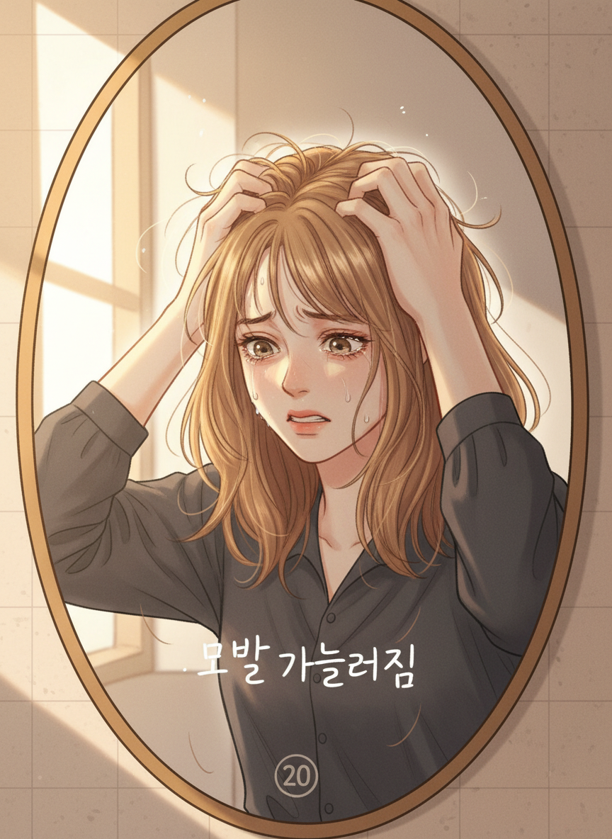 - 20. 모발 가늘어짐 및 탈모: 머리카락에 힘이 없고 정수리 부분이 휑해집니다.