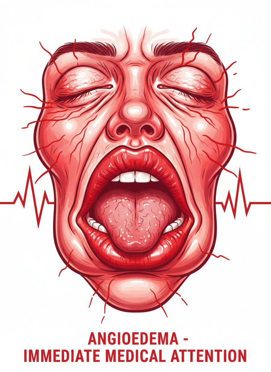 - 입술, 혀, 얼굴이 심하게 붓는 경우 (혈관부종)