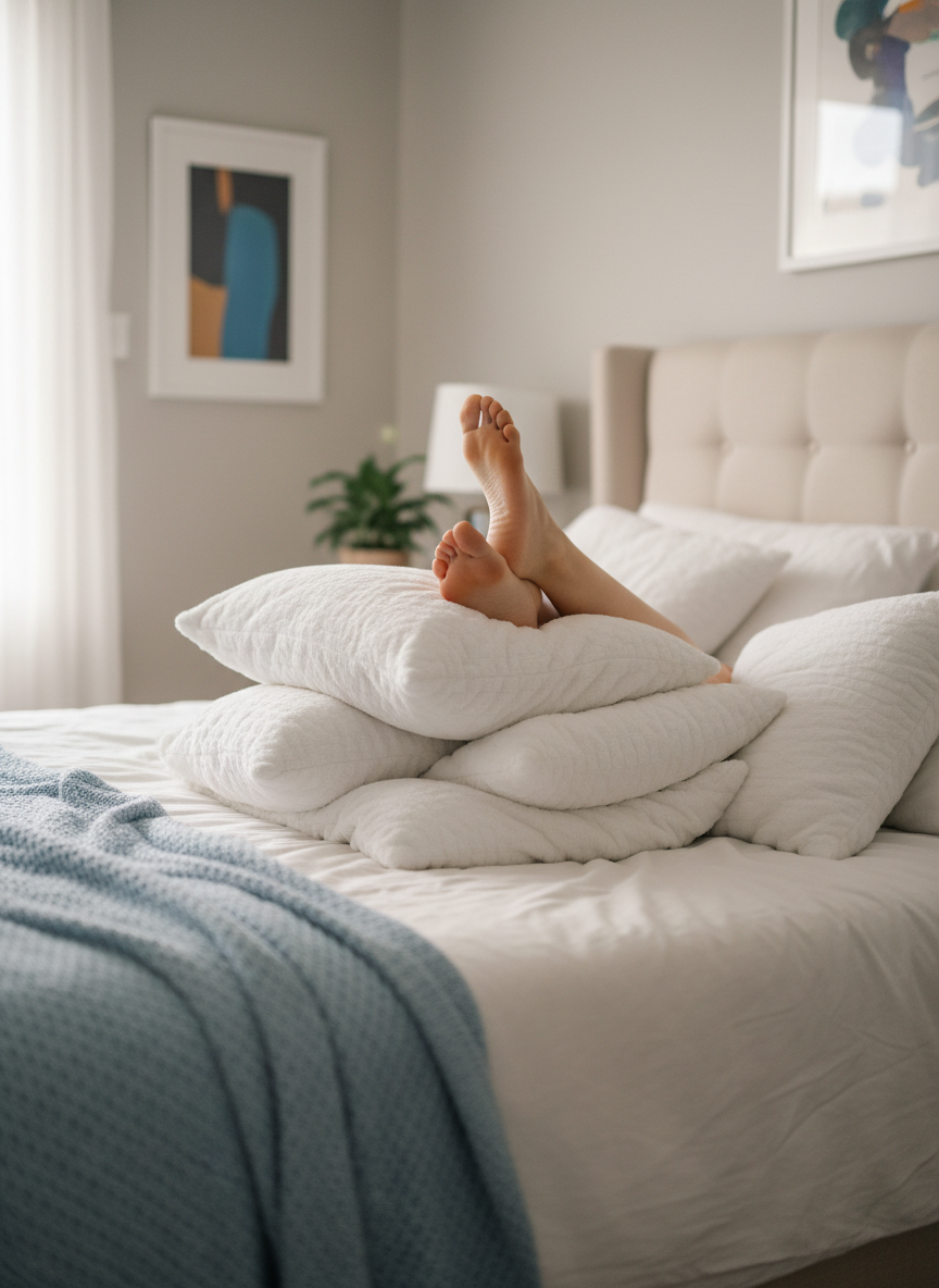 - 다리 부종이 있다면: 잠잘 때 베개 위에 다리를 올려 심장보다 높게 두면 붓기 완화에 큰 도움이 됩니다. 평소 짠 음식을 줄이는 것도 필수예요!