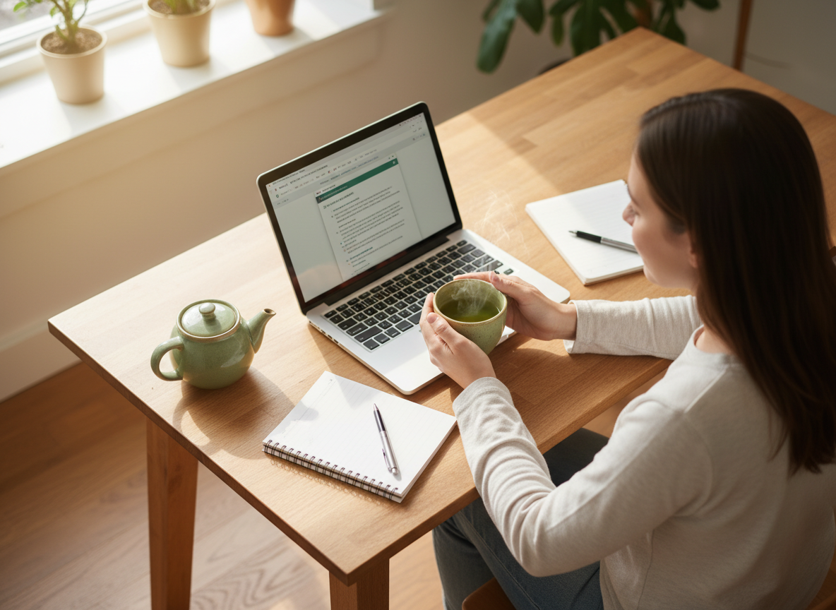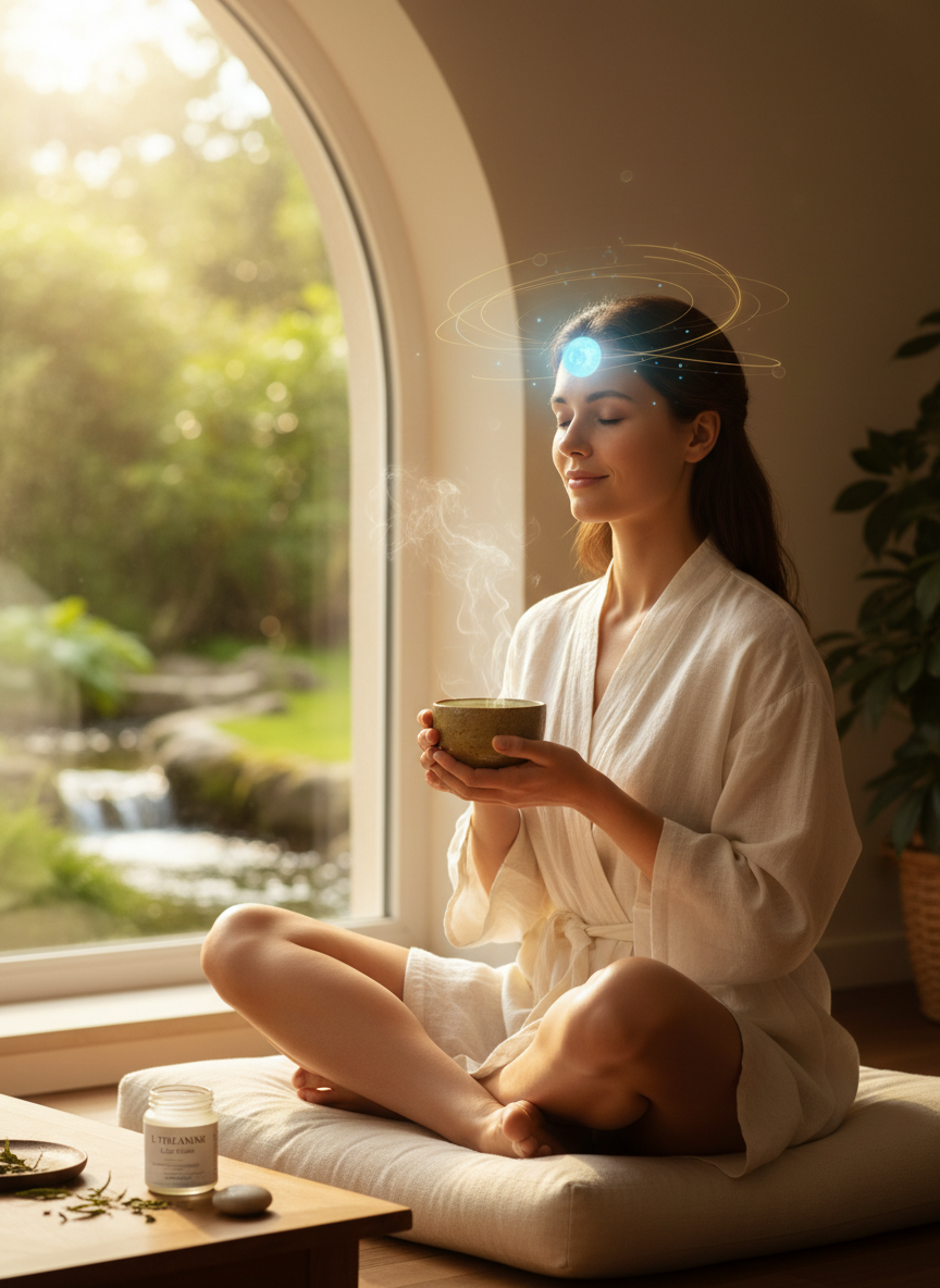 또 하나 주목해야 할 성분은 '테아닌(L-Theanine)'이에요. 보통 카페인이 들어있으면 가슴이 두근거리거나 불안해지기 쉽지만, 녹차는 테아닌 성분이 뇌파를 진정시켜 주어 차분한 상태에서 집중력을 유지할 수 있게 도와줍니다. 덕분에 '명상을 돕는 차'라는 별명도 가지고 있죠.