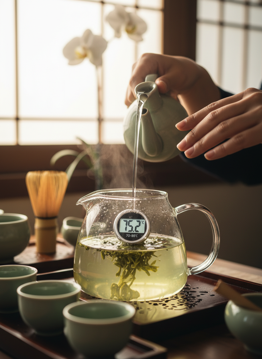 녹차의 효능을 제대로 보려면 '온도'와 '시간'이 핵심입니다. 펄펄 끓는 100도의 물은 녹차의 좋은 성분을 파괴하고 쓴맛만 강하게 만들어요.
