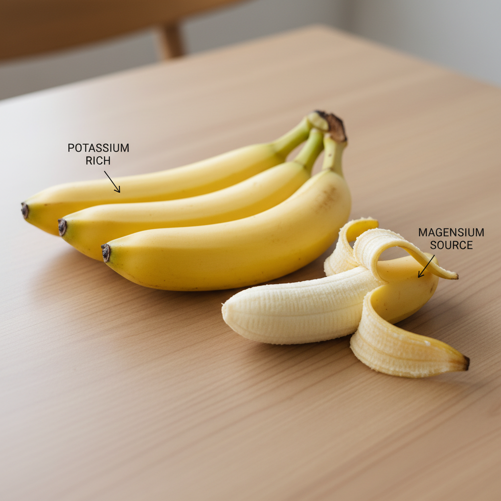 A: 마그네슘이 풍부한 바나나, 아몬드 같은 견과류, 시금치 등 짙은 녹색 채소가 도움이 됩니다. 또한 커피를 줄이고 물을 충분히 섭취하는 것이 중요합니다.
