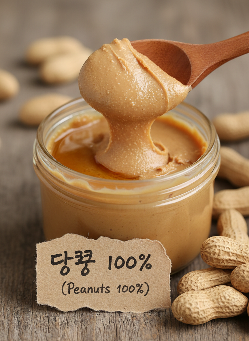 | 무첨가 땅콩버터 | 땅콩 100% 또는 소량의 소금만 함유 | ✅ 강력 추천 |