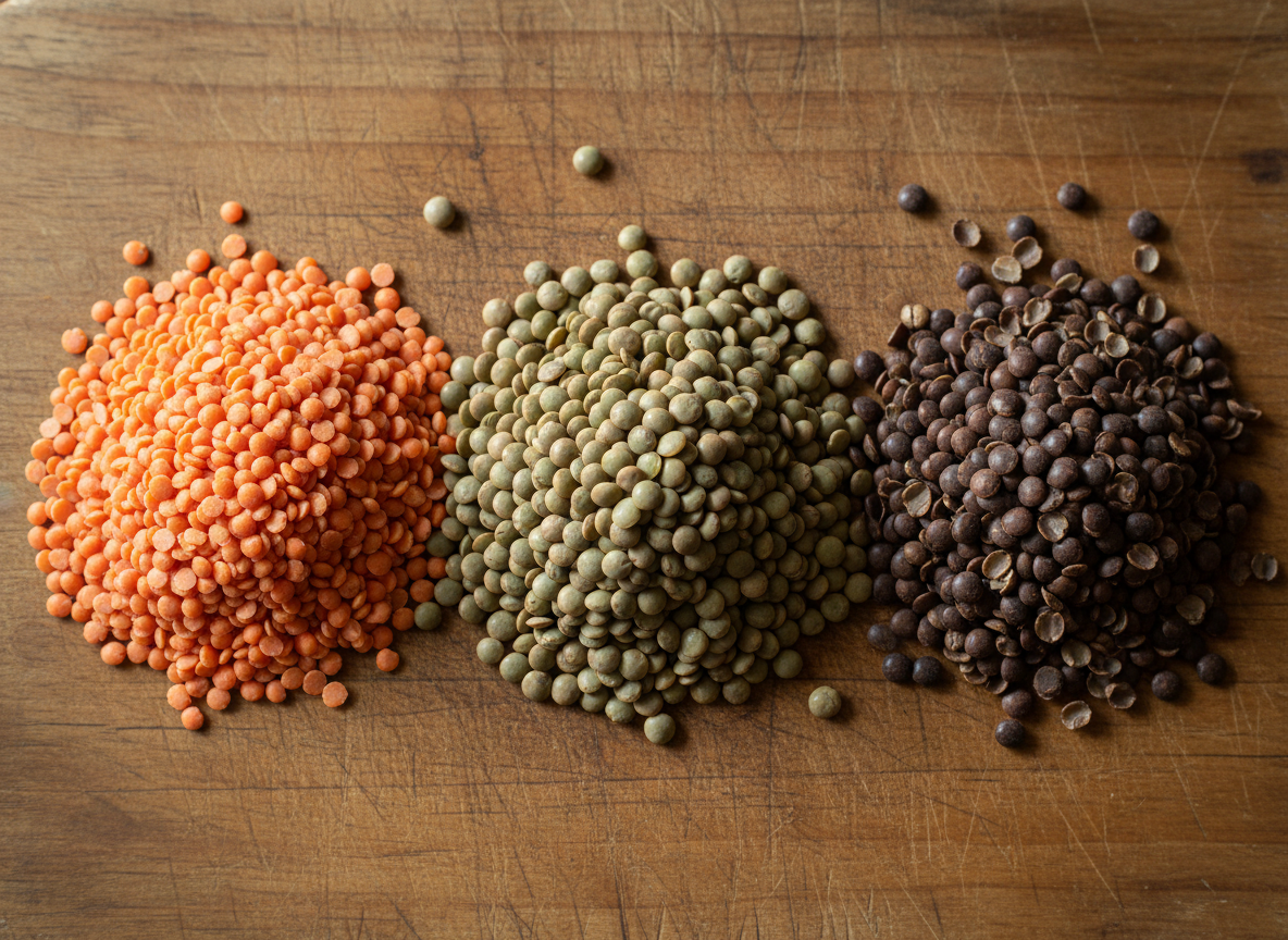 A1: 주로 붉은 렌틸콩, 초록 렌틸콩, 갈색 렌틸콩이 있어요. 붉은 렌틸콩은 가장 빨리 익고 부드러워서 수프나 퓨레에 좋고, 초록/갈색 렌틸콩은 식감이 살아있어 샐러드나 밥에 잘 어울립니다. 맛은 다 비슷하게 고소한 편이에요.