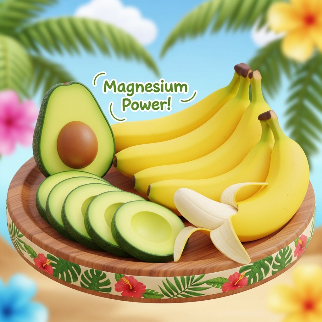 이 두 과일도 마그네슘이 풍부하기로 유명해요. 아보카도는 건강한 지방과 식이섬유도 많아서 샐러드나 샌드위치에 활용하기 좋고, 바나나는 휴대하기도 편해서 운동 전후 에너지 보충용으로도 탁월하답니다.