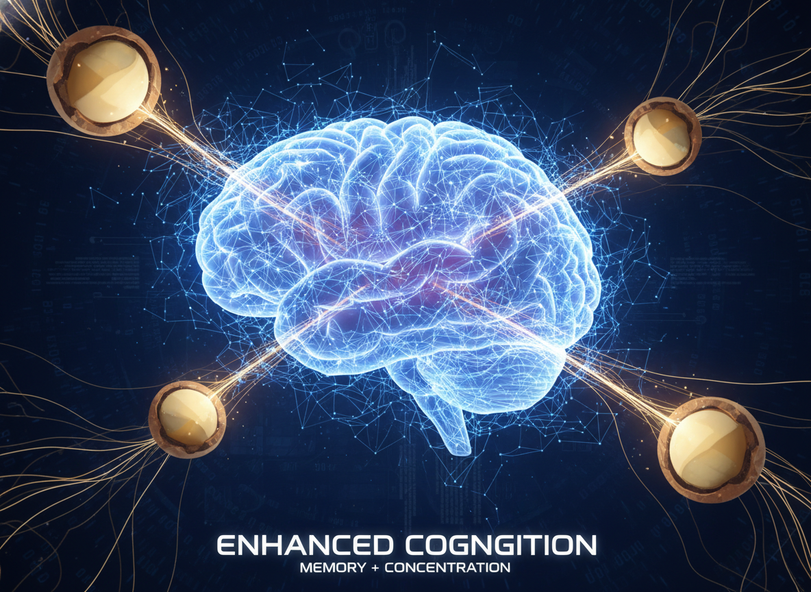 마카다미아의 약 75%는 지방으로 구성되어 있는데, 놀랍게도 이 중 대부분이 몸에 좋은 '불포화 지방산'이에요. 특히 뇌세포 활동을 돕고 혈관을 깨끗하게 해주는 팔미톨레산(Palmitoleic acid)이 풍부하게 들어있어, 다른 견과류와는 차별화된 영양학적 가치를 지니고 있어요.