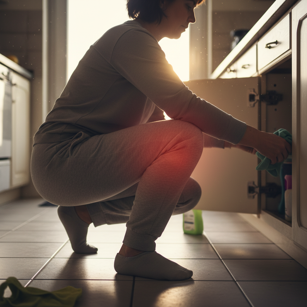 - 쪼그려 앉기, 양반다리: 한국의 좌식 문화는 무릎 최악의 적입니다. 관절 압력을 극도로 높이므로 반드시 의자 생활을 습관화하세요.
