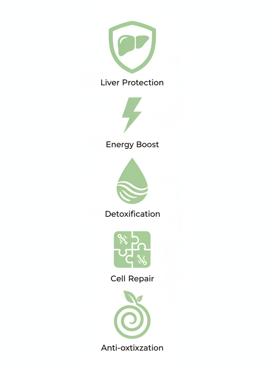 | 해독 보조 | 알코올이나 약물 대사 과정에서 생기는 독소 해독을 돕습니다. |