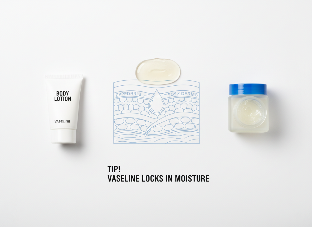 바세린은 수분을 공급하는 기능보다 '가두는 기능'이 강합니다. 따라서 건조한 상태에서 바르기보다 스킨이나 로션을 바른 후 그 위에 얇게 덧발라야 효과가 극대화됩니다!