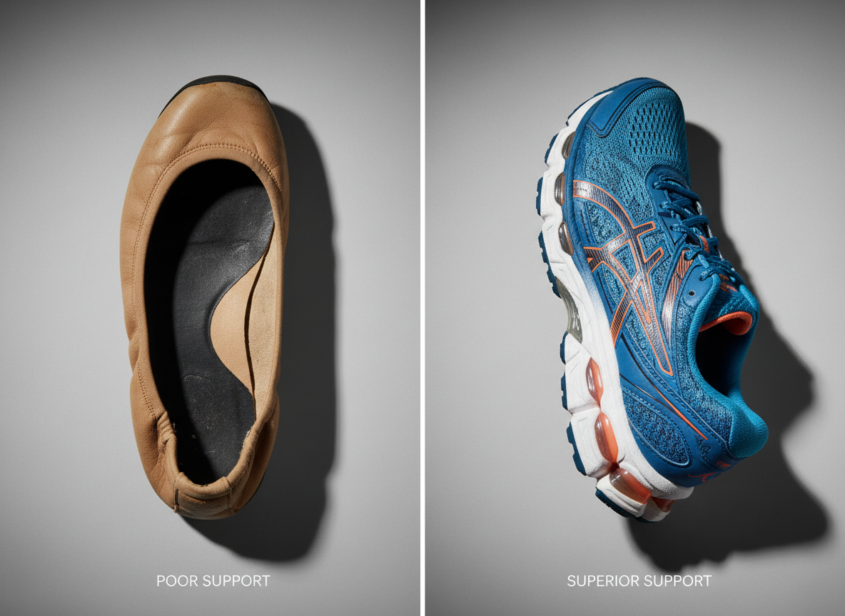 - 3) 적절한 신발 선택: 집에서도 딱딱한 바닥보다는 쿠션 있는 슬리퍼를 신고, 외출 시에는 충격 흡수가 잘 되는 운동화를 선택하세요.