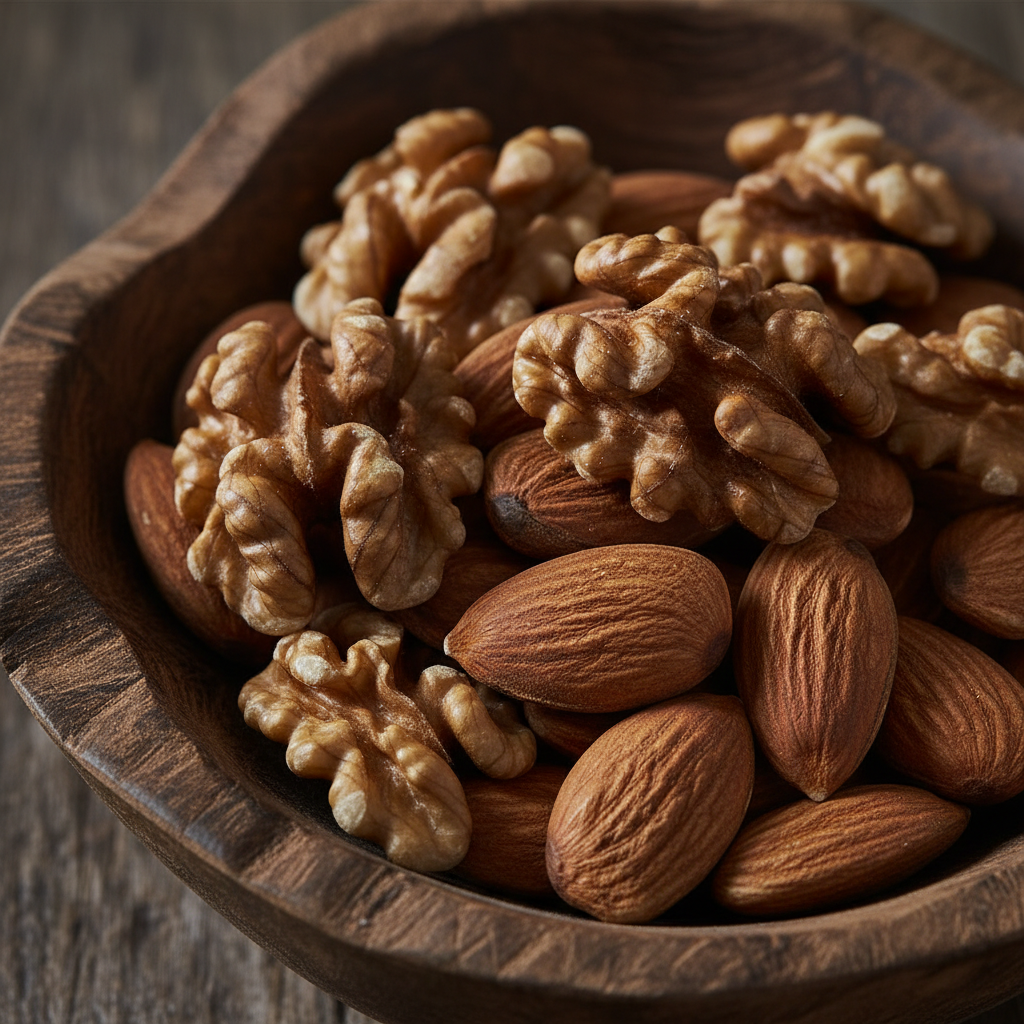 잠자리에 들기 전, 허기가 져서 잠이 안 오는 경우라면 견과류가 정답입니다. 아몬드에는 마그네슘이, 호두에는 멜라토닌 전구체가 풍부합니다. 특히 아몬드는 혈당을 급격히 올리지 않으면서도 적당한 포만감을 주기 때문에 '혈당 스파이크'로 인한 수면 방해를 막아줍니다.