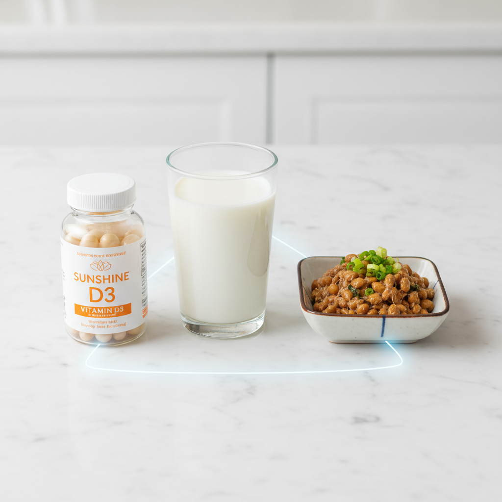 - ✅ 비타민 K2는 칼슘의 '길잡이' 역할을 해 뼈와 심혈관 건강에 필수적입니다.