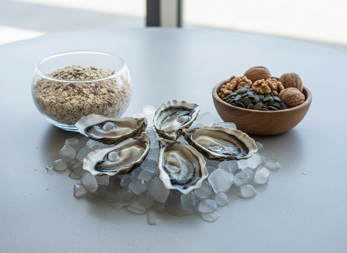 | 아연 | 굴, 견과류, 통곡물 |