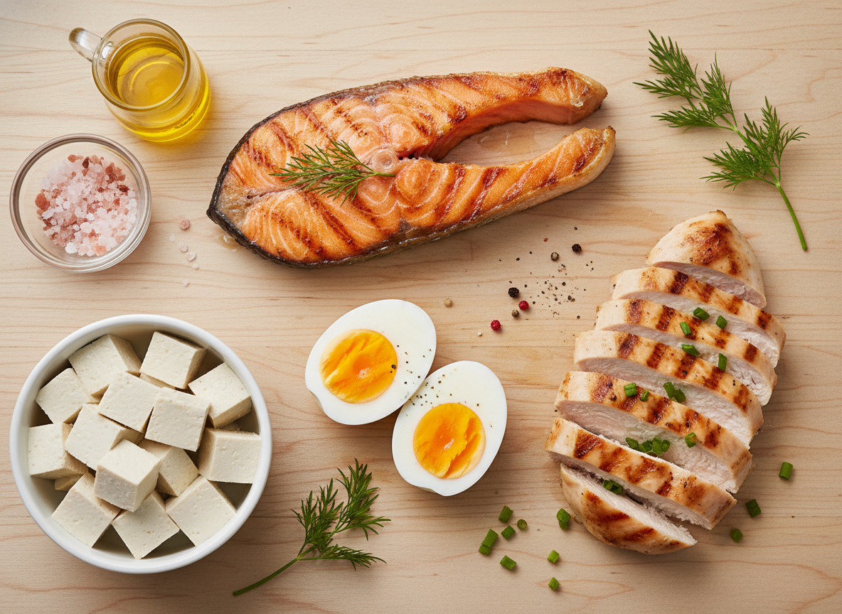 1) 단백질 채우기: 살코기, 생선, 달걀, 두부 등 양질의 단백질을 매끼 챙겨 드세요.