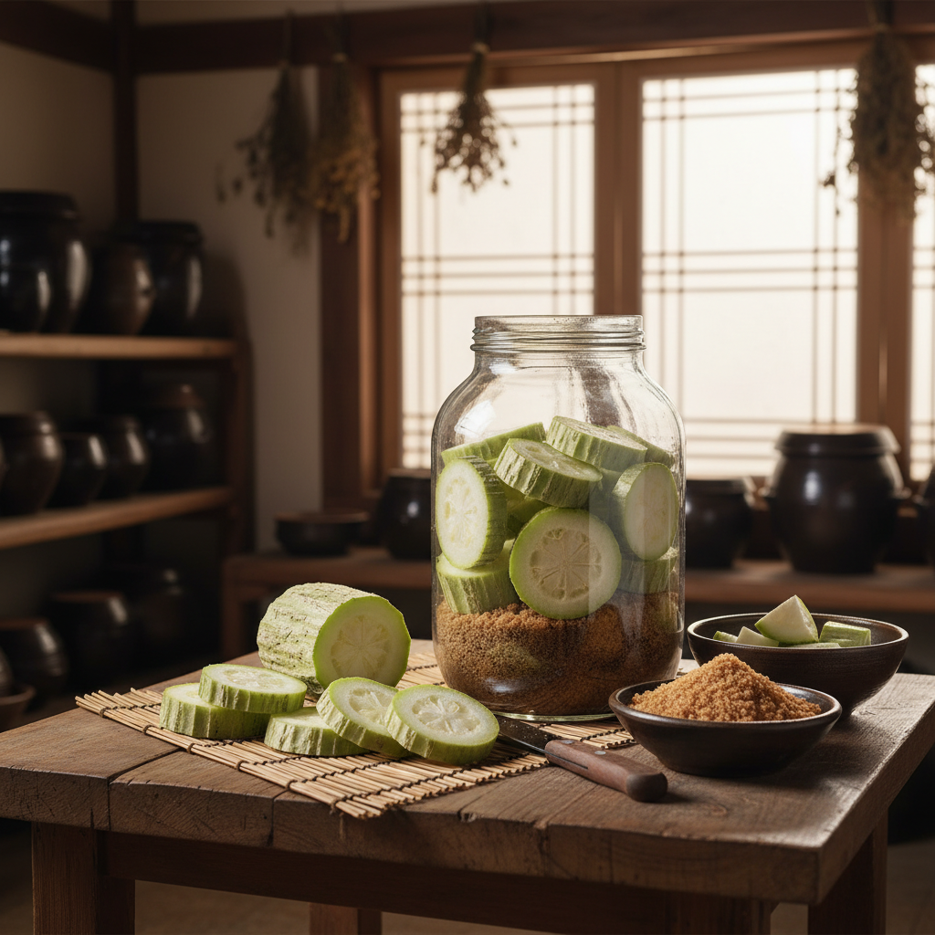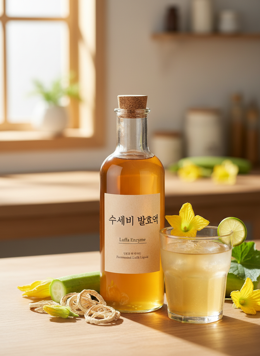 수세미를 가장 효과적으로 섭취하는 방법은 무엇일까요? 가장 대중적이고 흡수율이 좋은 방법은 '수세미 발효액(효소)'을 만드는 것입니다. 수세미와 설탕을 1:1 비율로 섞어 3개월 이상 숙성시키면, 특유의 비린 맛은 사라지고 달콤하고 깊은 맛의 엑기스가 완성됩니다. 이를 물에 타서 차갑게 혹은 따뜻하게 마시면 됩니다.