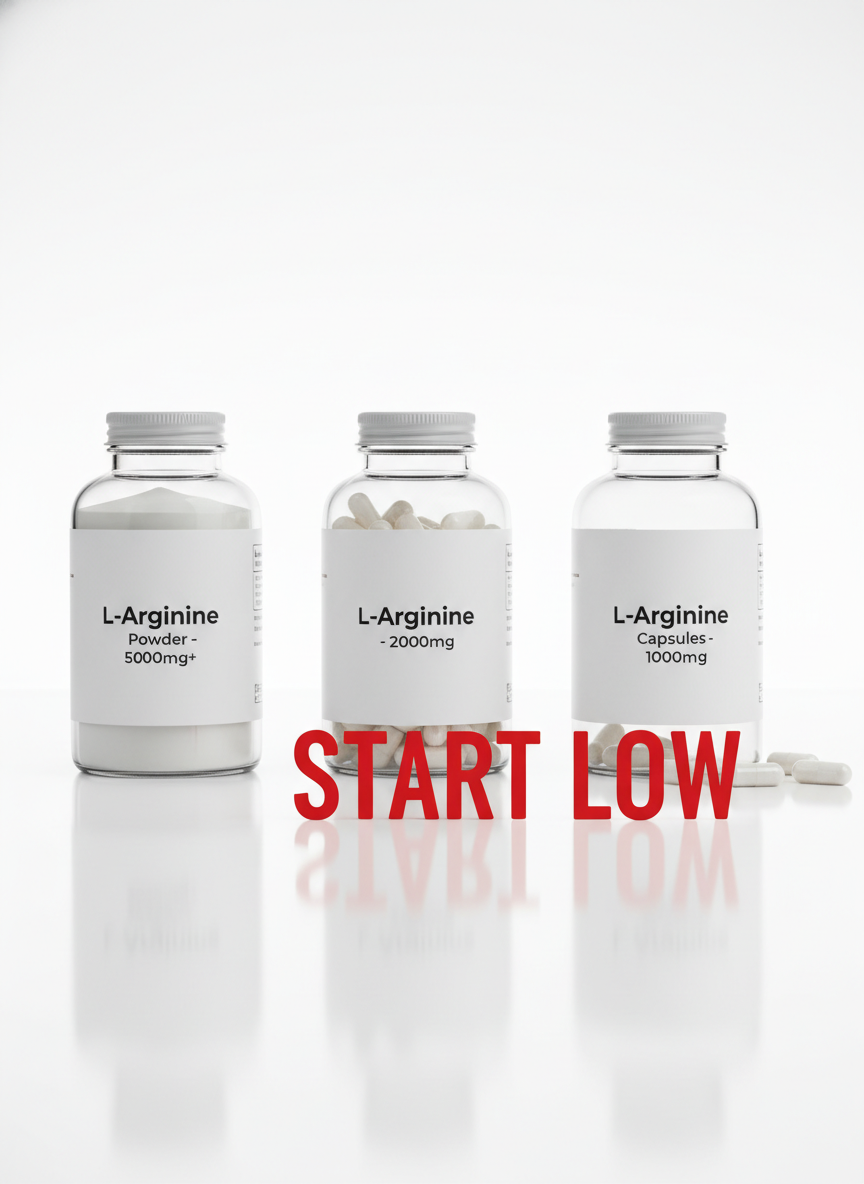 이미 헐거워진 수도꼭지를 더 틀어버리는 상황을 상상해 보십시오. 혈관이 과도하게 확장되면서 혈압이 급격히 떨어질 수 있고, 이로 인해 어지러움, 두통, 심하면 실신까지 이어질 수 있습니다. 특히 아침 공복에 고용량 아르기닌을 털어 넣고 운동을 하다가 '핑' 도는 느낌을 받았다면, 이는 체력이 부족해서가 아니라 혈압 조절에 실패했다는 신호일 가능성이 매우 높습니다. 수술을 앞두고 있거나 항응고제를 복용 중인 분들도 지혈 작용을 방해할 수 있으므로 반드시 의사와 상담해야 하는 금기 대상에 속합니다.
