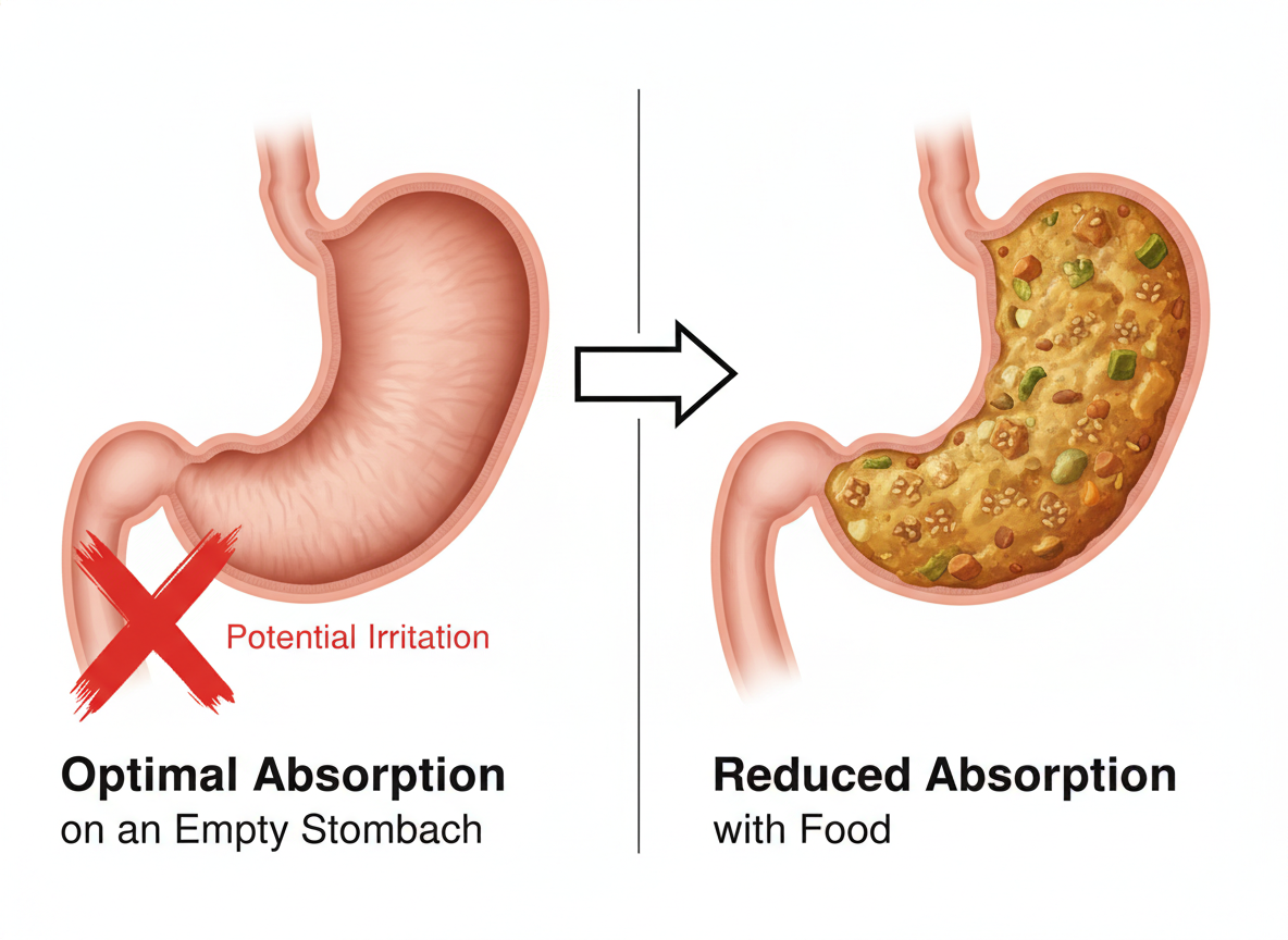 A: 흡수율이 낮기 때문에 '공복' 섭취가 기본 원칙입니다. 보통 기상 직후나 운동 시작 30분~1시간 전에 드시는 것을 권장합니다. 다만 위장 장애가 있다면 식후에 드시는 것으로 타협하셔야 합니다.