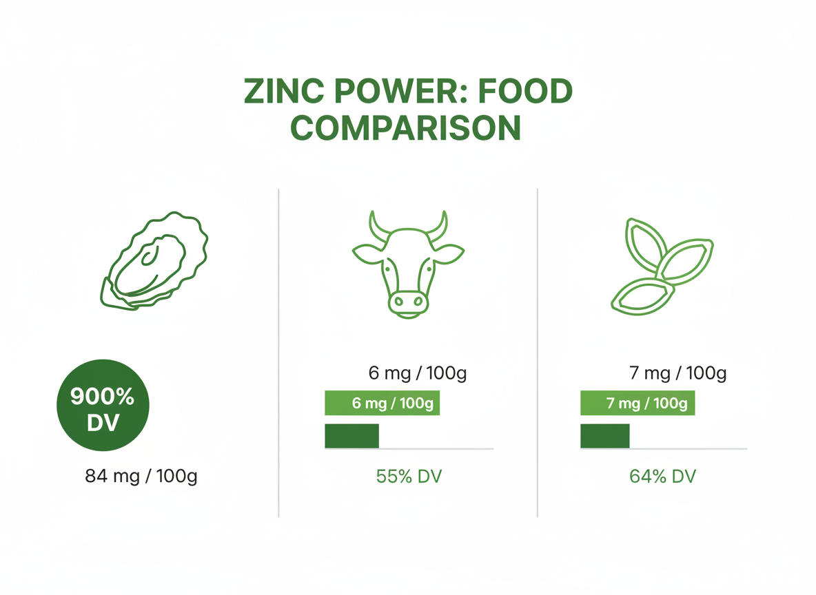 아연이 풍부한 식품 영양 비교 (100g 기준)
