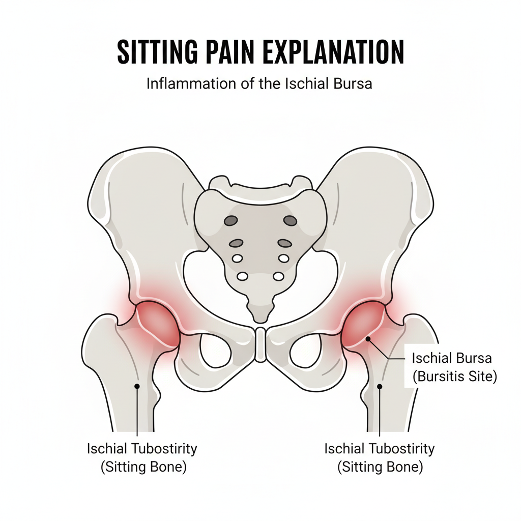 | 오래 앉으면 심해지는 엉덩이 통증 | 이상근 증후군, 좌골 점액낭염 |