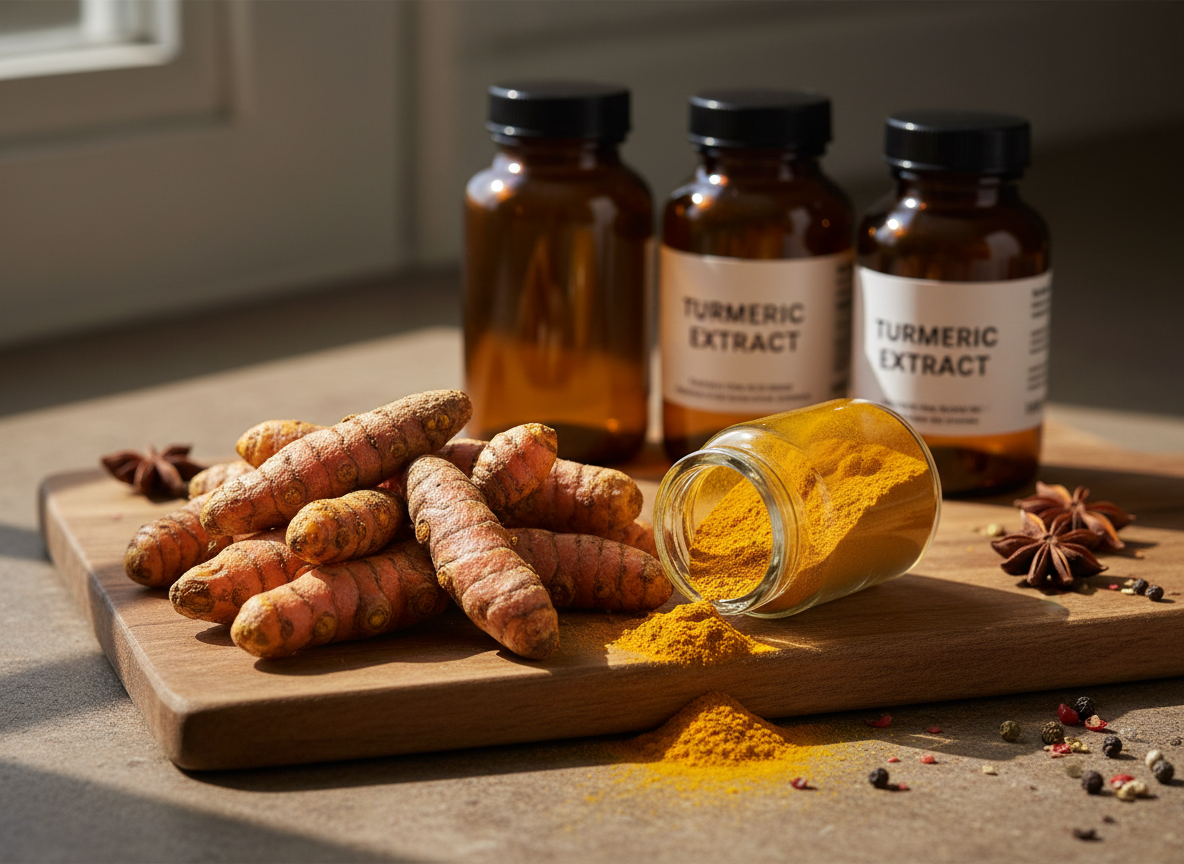 카레의 주성분인 강황에서 추출되는 커큐민은 강력한 항산화 및 항염증 특성을 가지고 있어요. 염증 경로의 핵심 단백질을 조절하여 염증 반응을 억제하는 것으로 알려져 있죠. 특히 만성 통증을 동반하는 관절염 환자들에게 도움이 된다는 연구 결과도 많습니다. 흡수율이 낮은 편이라 흡수율을 높인 제형(예: 피페린 함유)을 고르는 것이 중요합니다.