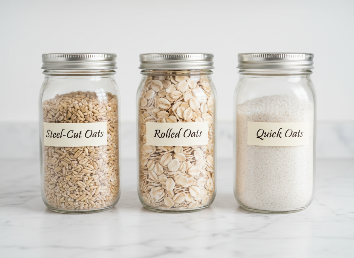 - 스틸컷 오트 (Steel-Cut): 통귀리를 단순히 자른 것으로 영양이 가장 풍부하지만 조리 시간이 20분 이상 길어요.