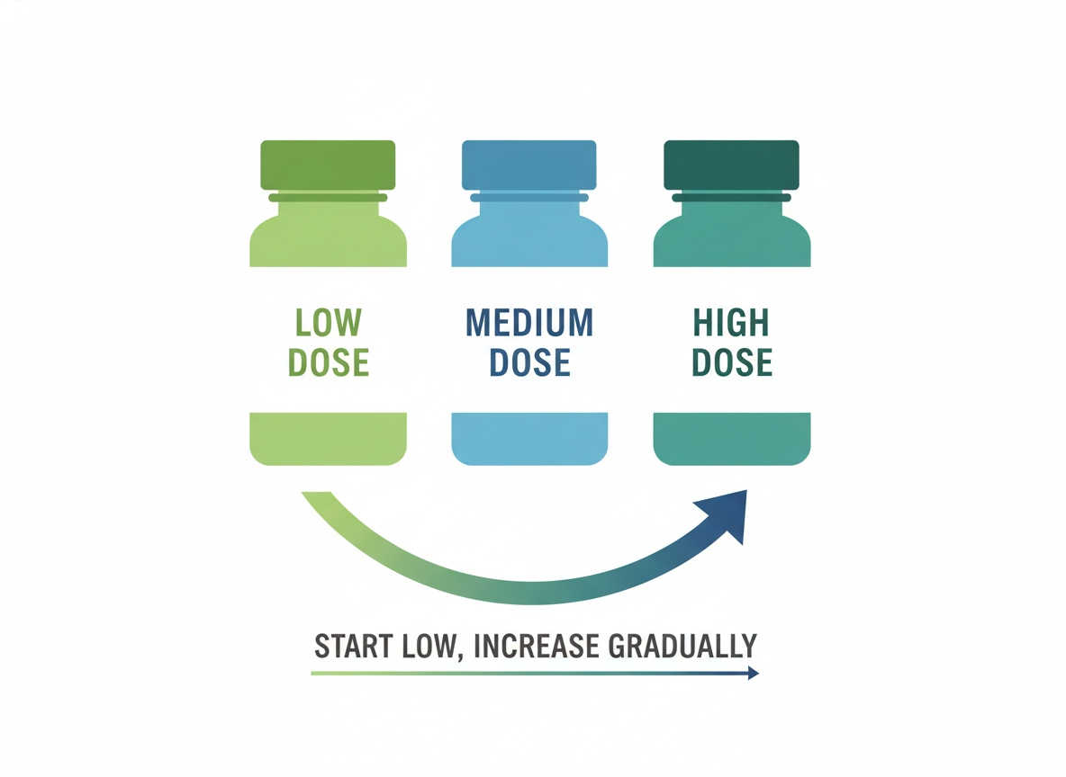 - 낮은 용량부터 시작하기: 처음부터 고용량을 복용하기보다는 낮은 용량으로 시작하여 점차 늘려나가는 것이 몸이 적응하는 데 도움이 됩니다.