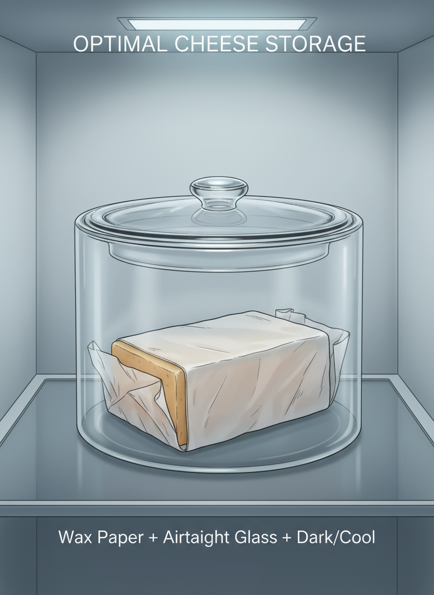 A: 치즈는 숨을 쉬어야 하므로 비닐 랩보다는 종이 호일(유산지)로 감싼 뒤 밀폐 용기에 넣어 냉장 보관하는 것이 가장 좋습니다. 냄새를 잘 흡수하므로 향이 강한 음식과는 격리하여 보관하세요.