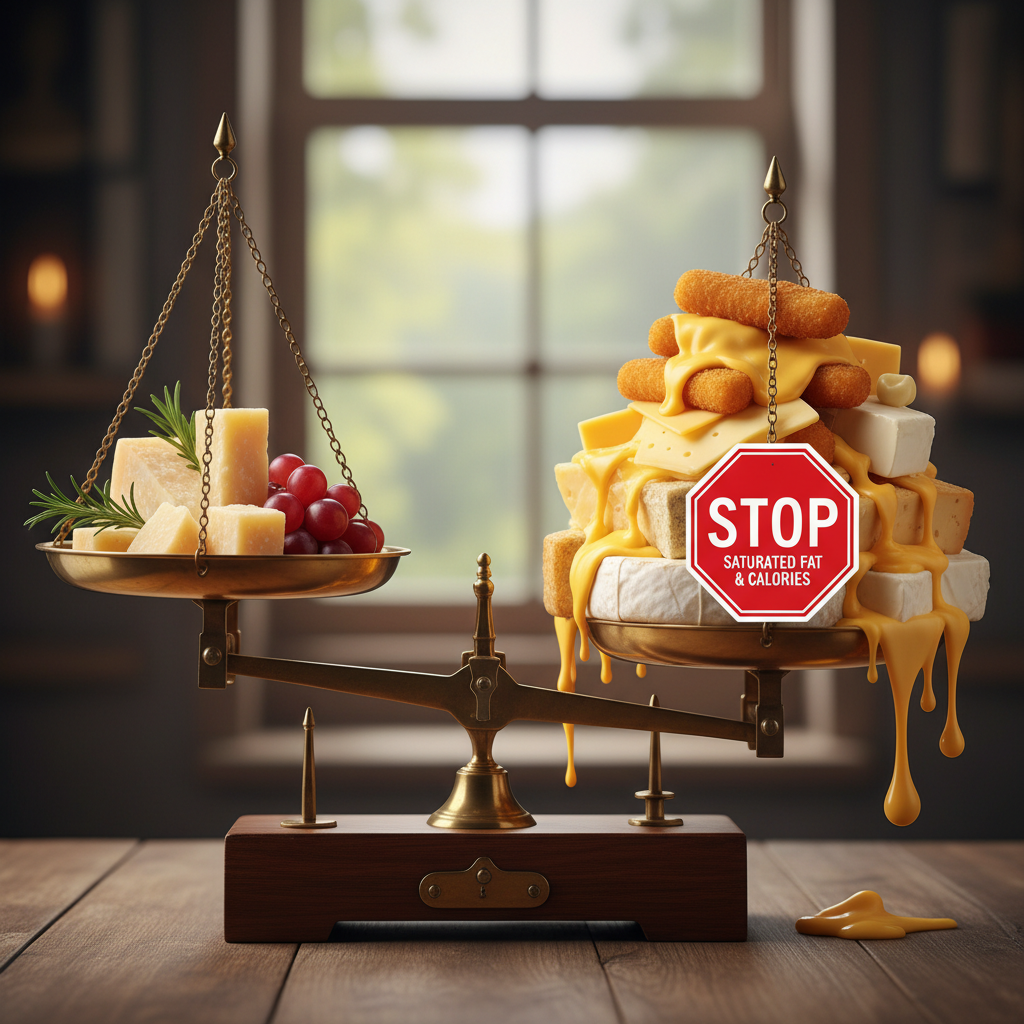 셋째, 양 조절이 핵심입니다. 하루에 슬라이스 치즈 1~2장 분량이 적당하며, 와인 안주 등으로 과다 섭취 시 나트륨과 포화지방의 위협을 기억해야 합니다.