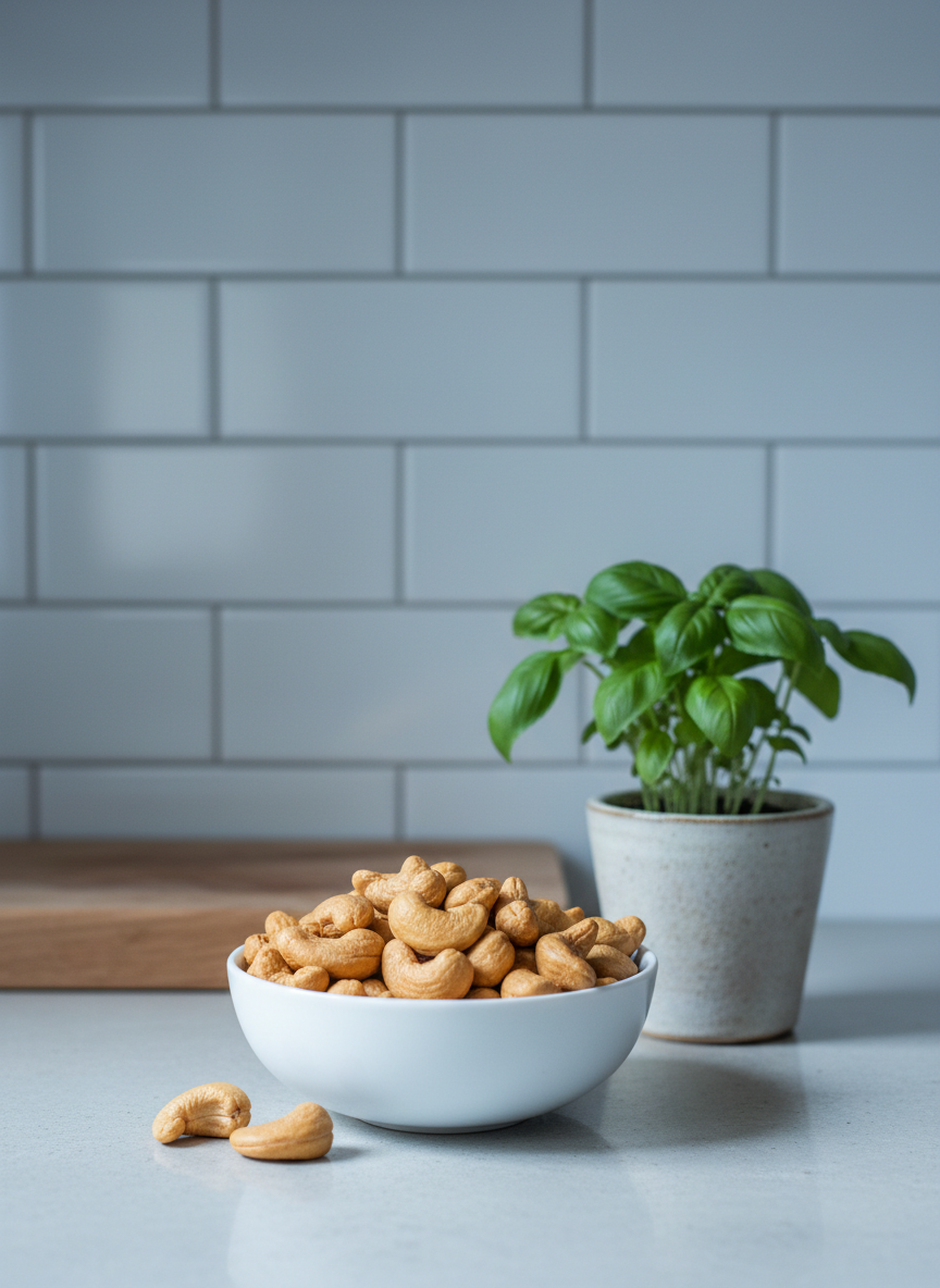 캐슈넛은 견과류 중에서도 탄수화물 함량이 조금 높은 편에 속하지만, 당 지수(GI)가 낮아 혈당을 급격히 올리지 않는 건강한 탄수화물 공급원입니다.