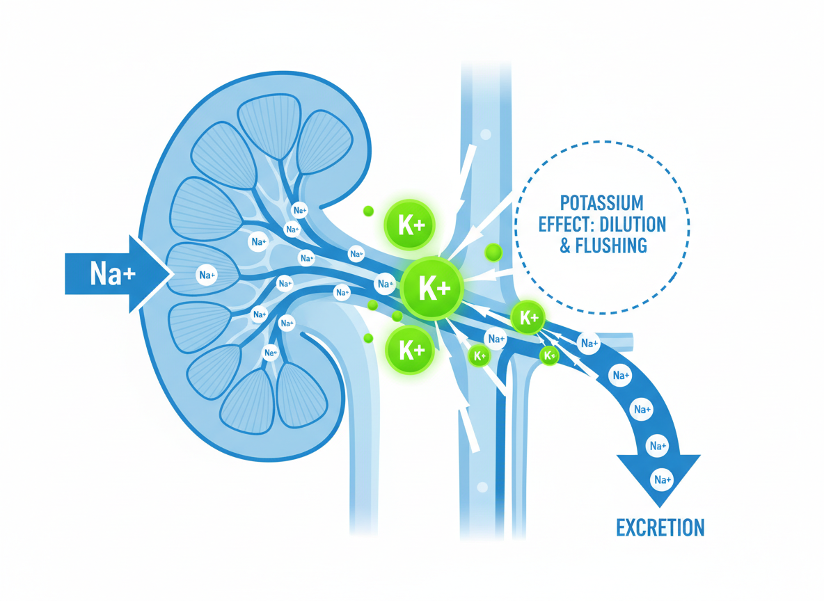 쉽게 비유하자면, 짠 국물에 물을 부어 간을 맞추는 원리와 같습니다. 우리 몸에서 물 역할을 하는 것이 바로 칼륨이 풍부한 채소와 과일입니다. 시금치, 바나나, 고구마 같은 식품들은 체내 나트륨을 소변으로 끌고 나가는 '배출 트럭' 역할을 합니다. 단순히 소금을 줄이는 방어적인 태도보다는, 칼륨을 먹는 공격적인 태도가 훨씬 지속 가능합니다.