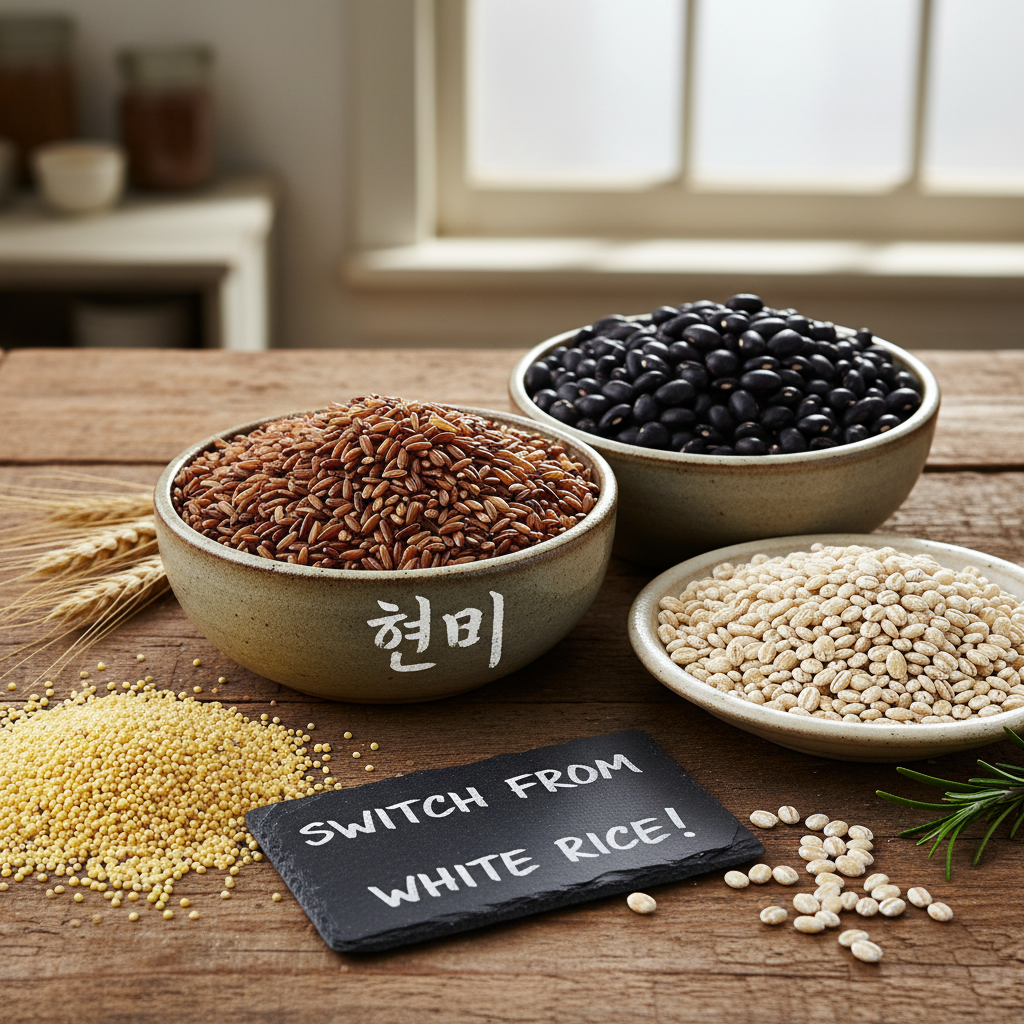 표에서 보시듯, 거창한 메뉴 변경이 아닙니다. 흰 밥을 잡곡으로 바꾸고, 국물을 덜 먹는 작은 실천이 모여 혈관을 깨끗하게 만듭니다.